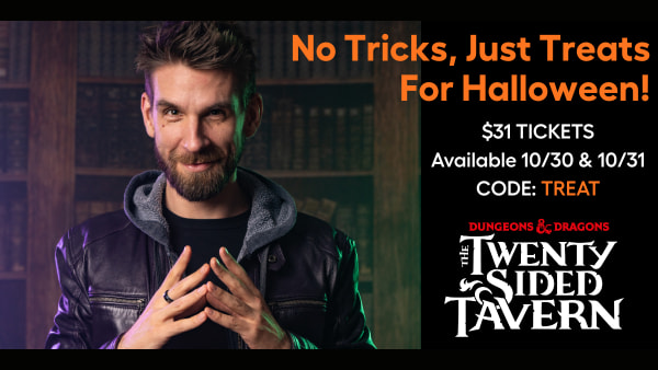 Give your DM Advantage and get 5 tickets for the cost of 4 with the code DM5 - Valid for both performances of The Twenty Sided Tavern on Non-VIP seats. Online Only.