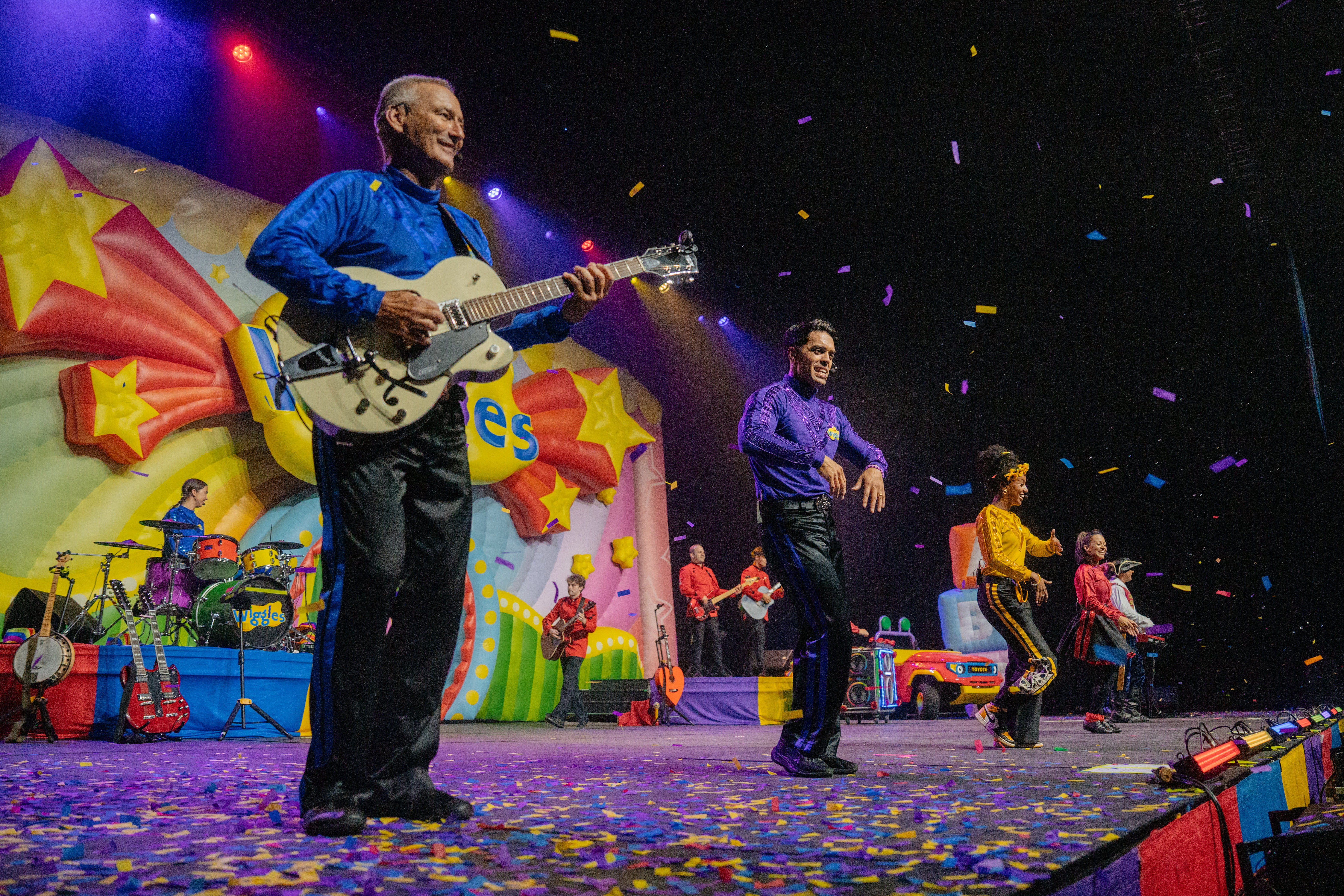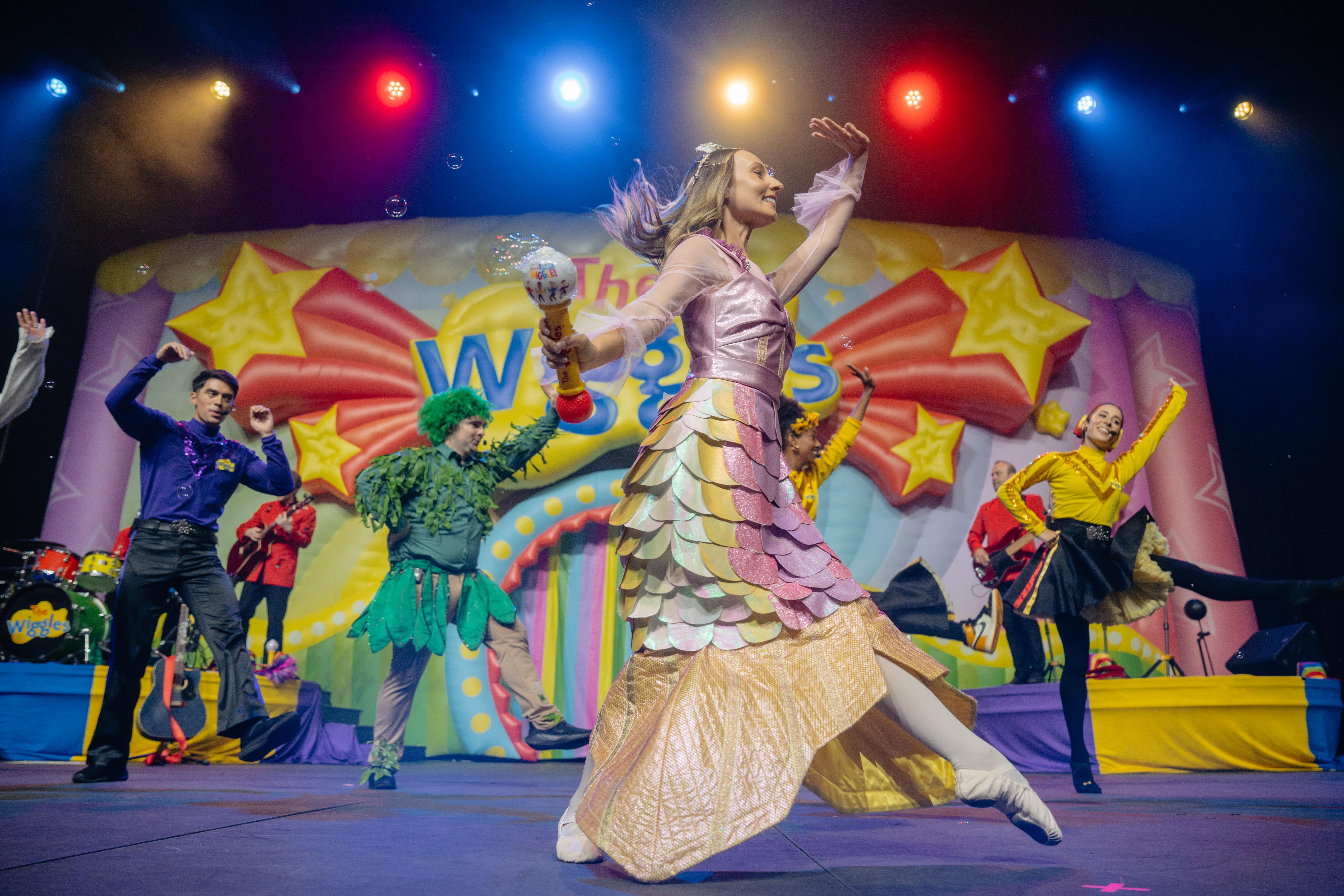 The dazzling interactive and engaging live-show experience is set to spark creativity, curiosity and a love of learning through The Wiggles signature blend of entertainment and education. Audiences will sing along to classic Wiggles songs such as Hot Potato, Fruit Salad Yummy Yummy, Rock-A-Bye Your Bear, Do The Monkey, interspersed with their newer hits like Wiggle and Learn, Bin Night, Roar Like a Dinosaur and of course, Bouncing Balls!