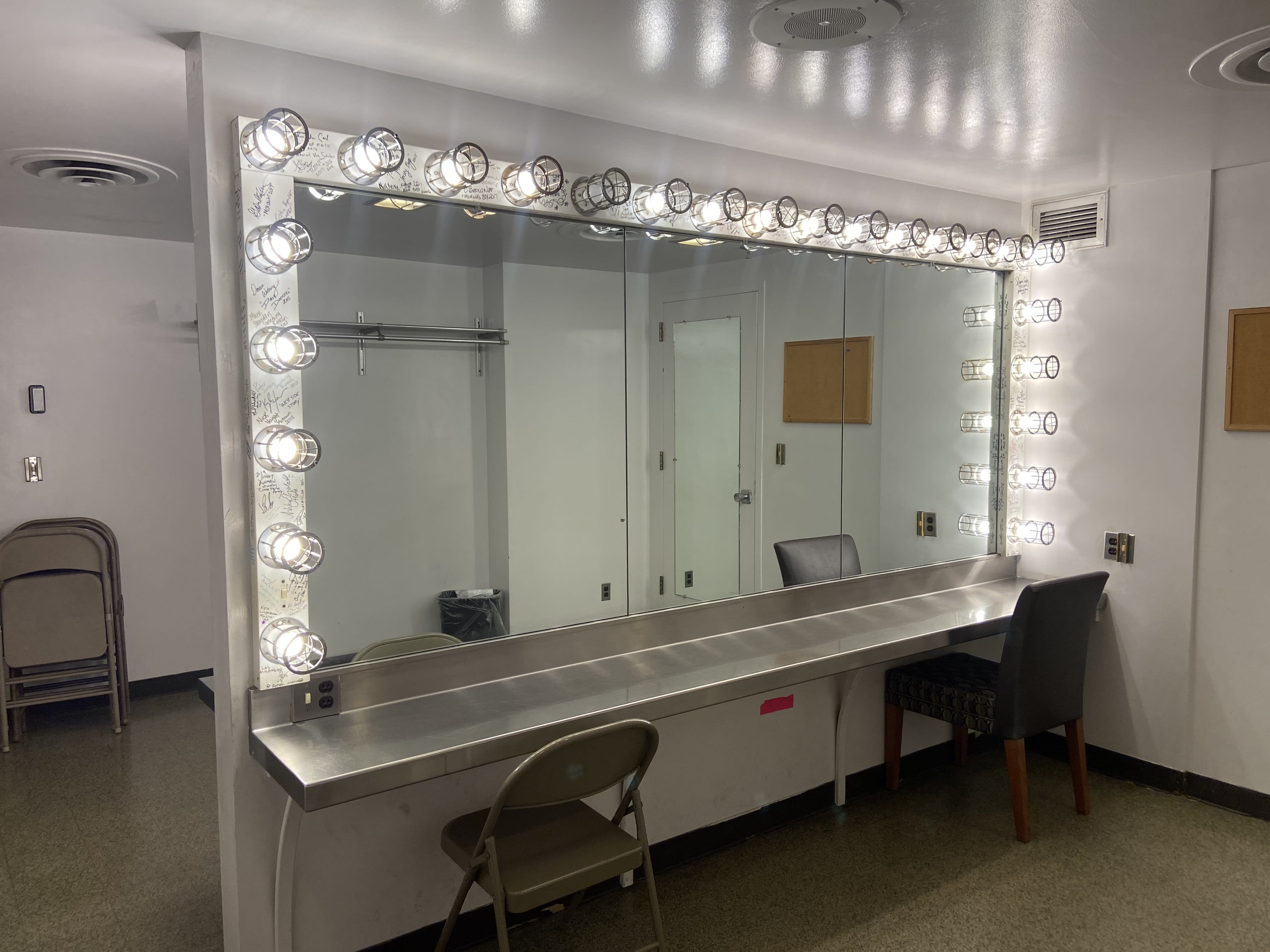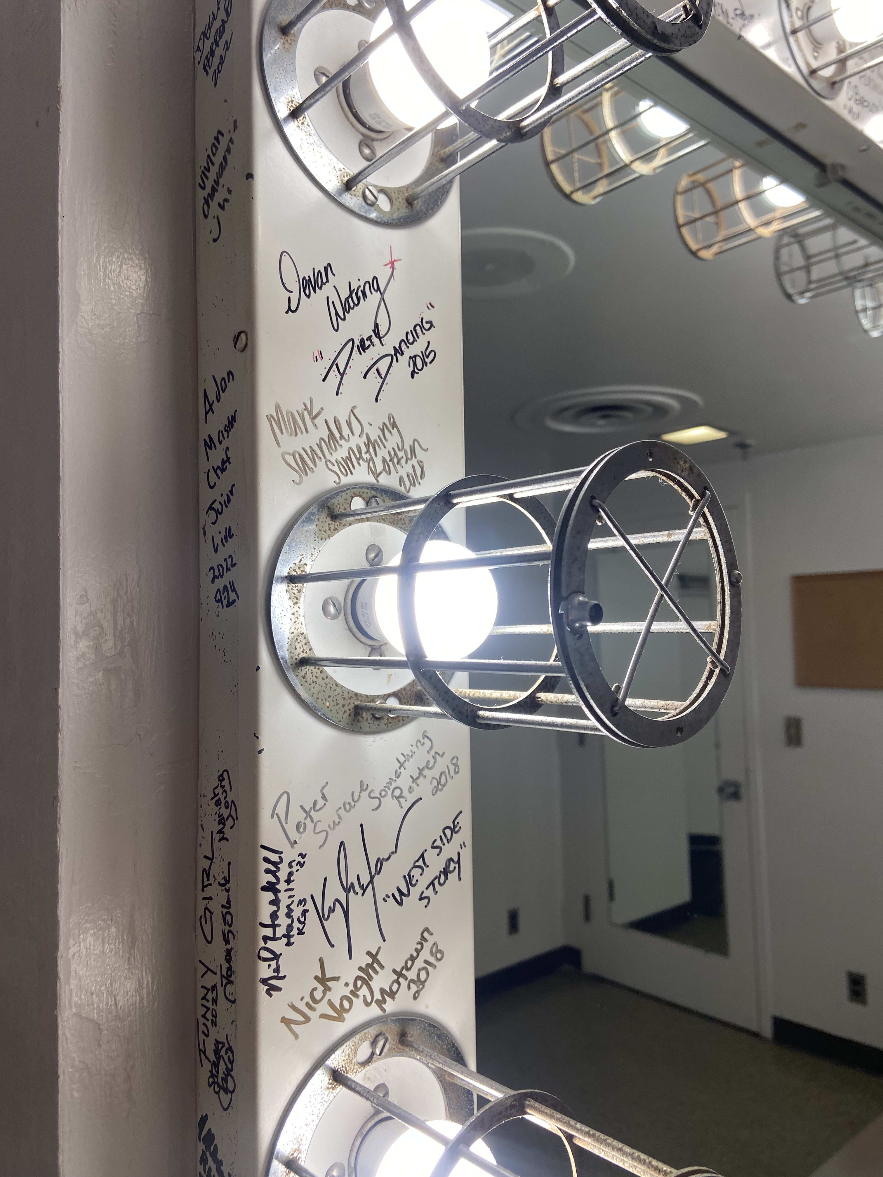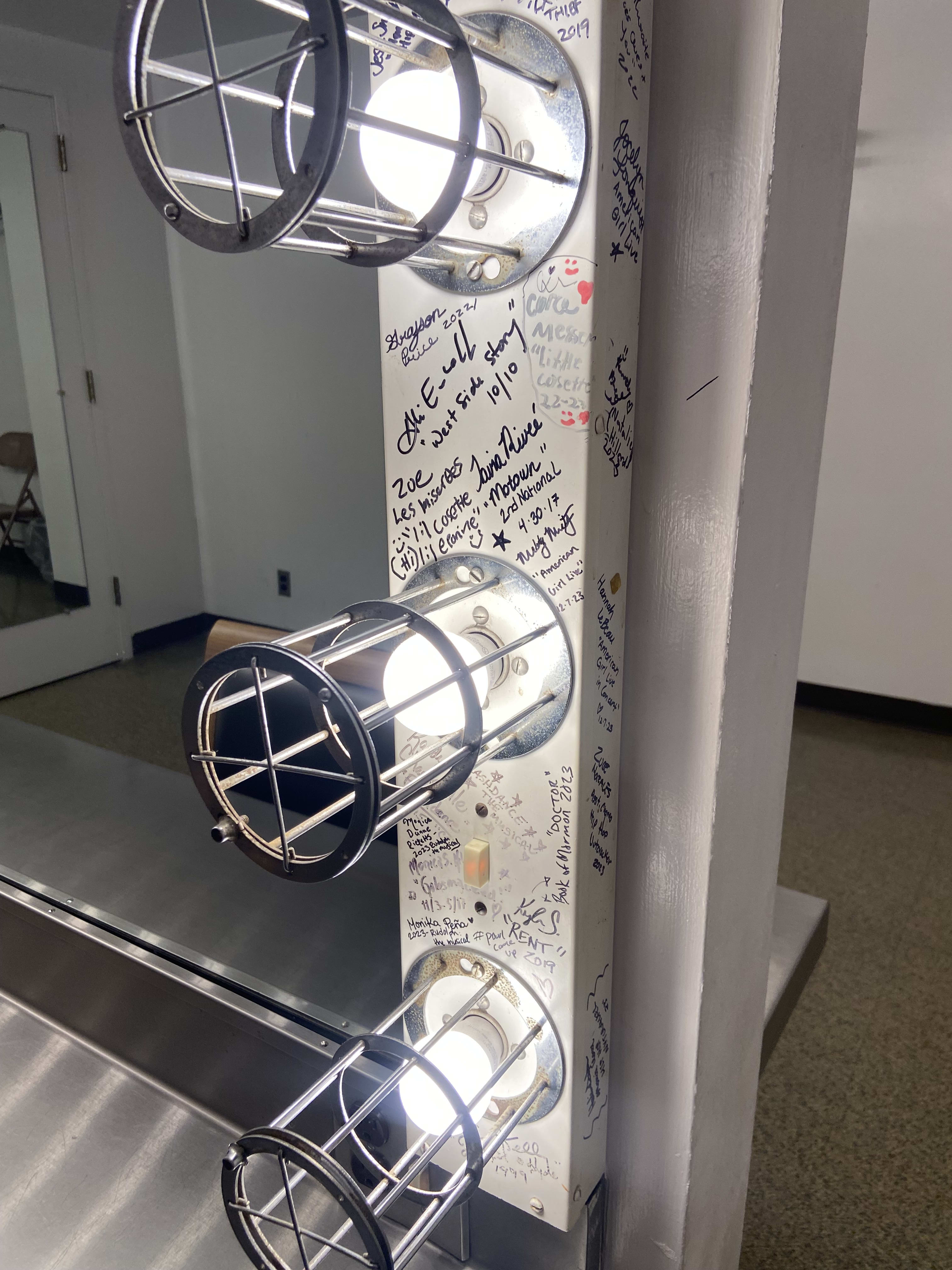 The rooms upstairs also have large lighted makeup mirrors. One thing you may notice are the signatures on mirrors. A lot of the artists who perform here leave their mark by signing their names!