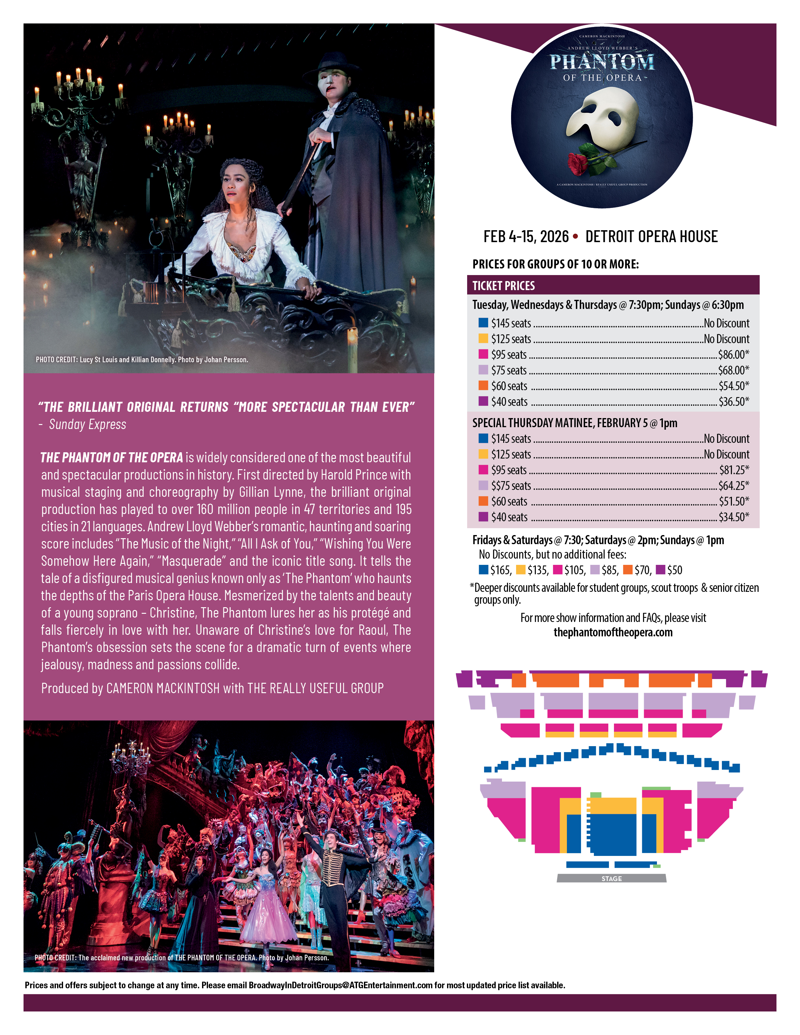 The following disclaimers apply to Broadway In Detroit Group Sales.